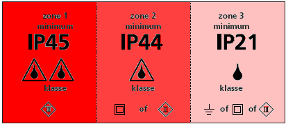 voor elektra in badkamers en douches: in het algmeen natte ruimten.