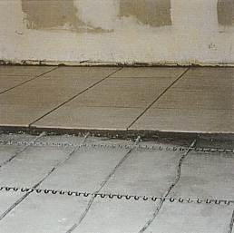 Elektrische vloerverwarming als opbouw, bijvoorbeeld bij marmer en andere natuurstenen, die in de specie "gezet" worden. |