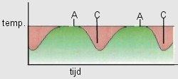 IN bovenstaand diagram (links) is het verloop van de vloertemperatuur aangegeven.