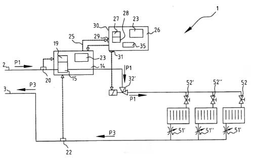 - een regeling die de toevoer van het water in de verwarmingsinstallatie regelt.