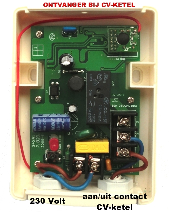 De verbinding tussen de thermostaat en de ontvanger geschiedt op een frequentie van 433 MHz. De ontvanger