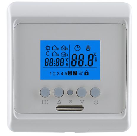Een ideale én geavanceerde (optimaliserende) inbouw thermostaat voorzien van druktoetsen, inclusief ruimte- en vloersensor, de keuze van temperatuurmeting is middels het menu aan te passen (vloer, ruimte of beide). Deze thermostaat is voorzien van vele functies waaronder achtergrond verlichting. Stand-alone.