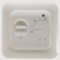 - Regeling van vloer- en ruimtetemperatuur: met de draaiknop regelt men de ruimtetemperatuur. De inwendige draaiknop staat standaard op 30°C, en kan worden ingesteld op een temperatuur tussen de 25°C en 50°C. Deze fungeert als vloertemperatuurbegrenzer.