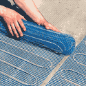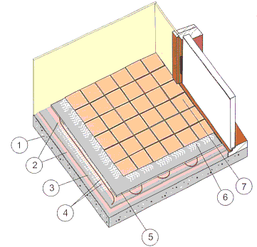 In deze laag wordt de mat met daarop de vloerverwarmingskabel aangebracht. De kabel wordt in de lijm gelegd (de mat waarop de kabel is aangebracht wordt naar boven gelegd)