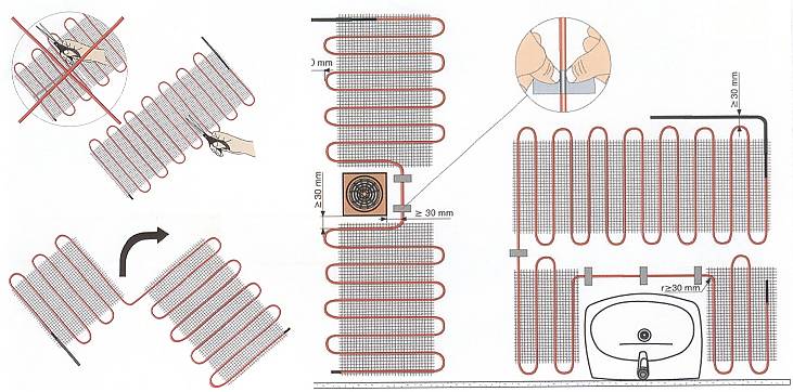 Daarna wordt thermostaat, bij voorkeur in een lege buis, tussen twee kabels gelegd (in de nabijheid van de deur).