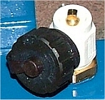 omdat de as van de pomp vastzit midden) van het pomphuis los. Met