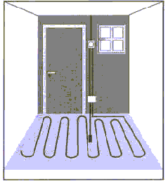 Om de vloervoeler eventueel later ooit eens te kunnen vervangen, raden wij aan deze in een op het einde afgesloten PVC buis te stoppen welke zich in de buurt van een deuropening bevind. De voeler dient hierbij tussen twee verwarmingskabels geplaatst te worden (zie afbeeldingen).